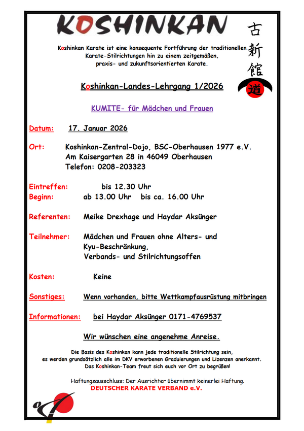12.09.: Koshinkan Kumite & Kata Lehrgang